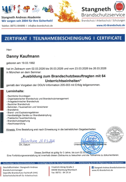 Ausbildung Brandschutzbeauftragter